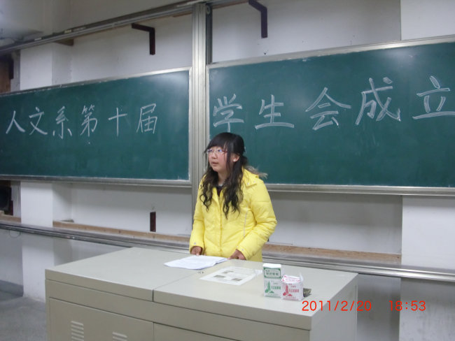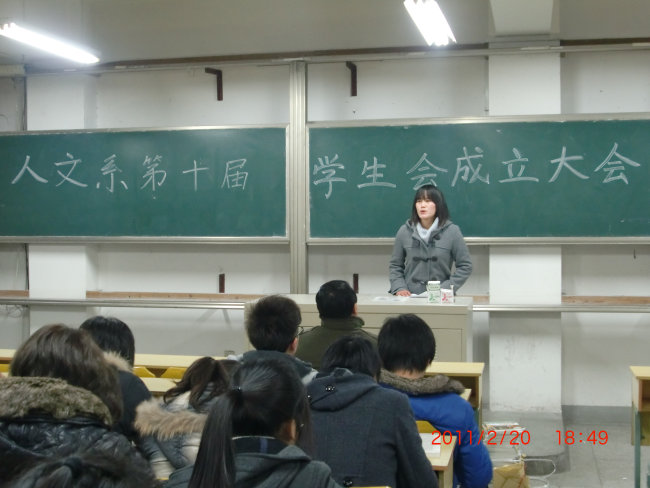 2月20日晚7点,迎春2012教室,人文系举行了简单而隆重的第十届员工会成立大会。全体员工会成员、自管会成员、各班班长和团支书出席了本次大会。