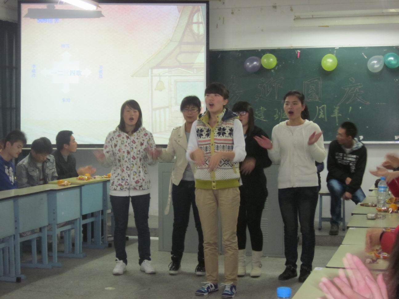 本次活动以庆祝10对外汉语建班一周年为主题,除本班同学悉数参加外,11级新生班团干及11综合文科班部分同学也到场观摩。活动一开始,同学们精心制作的班级活动影集,就把大家带入了温馨的回忆中,忆往昔有惆怅亦有欢乐。在接下来的活动中同学们载歌载舞、笑闹逗趣,吉他弹唱、脑筋急转弯、红色短剧等表演精彩纷呈。还有活动中穿插的小游戏环节,10、11级同学友好互动、积极交流,欢声笑语不断。在愉悦的气氛中,10对外全体同学合唱《走向新时代》再次将活动推向了高潮!