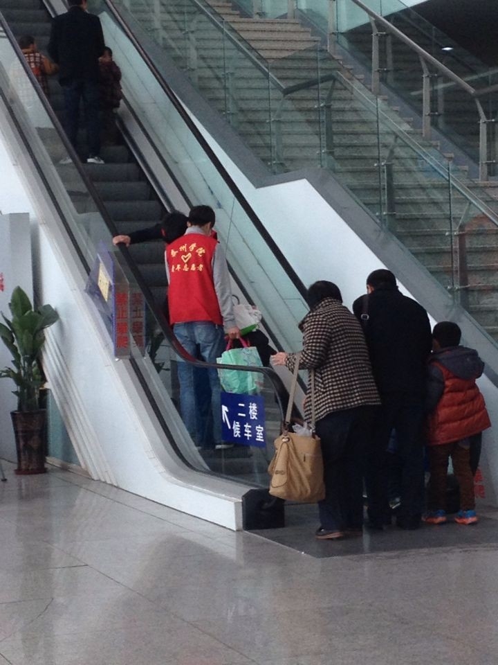 早上9点,志愿者们便到达火车站,穿上统一服装、挂上工作证,紧锣密鼓的投入到服务中去。由于火车站人流量大、服务工作量也较为繁重,工作人员事先对志愿者进行了分组,按组分配任务,有的维持现场秩序,有的为旅客提供信息咨询服务,大家各司其职、认真投入。“您好!请到3号窗口买票”、“请到2楼候车室等候列车”,员工们用热情的语言和周到的服务给广大旅客留下了深刻的印象。