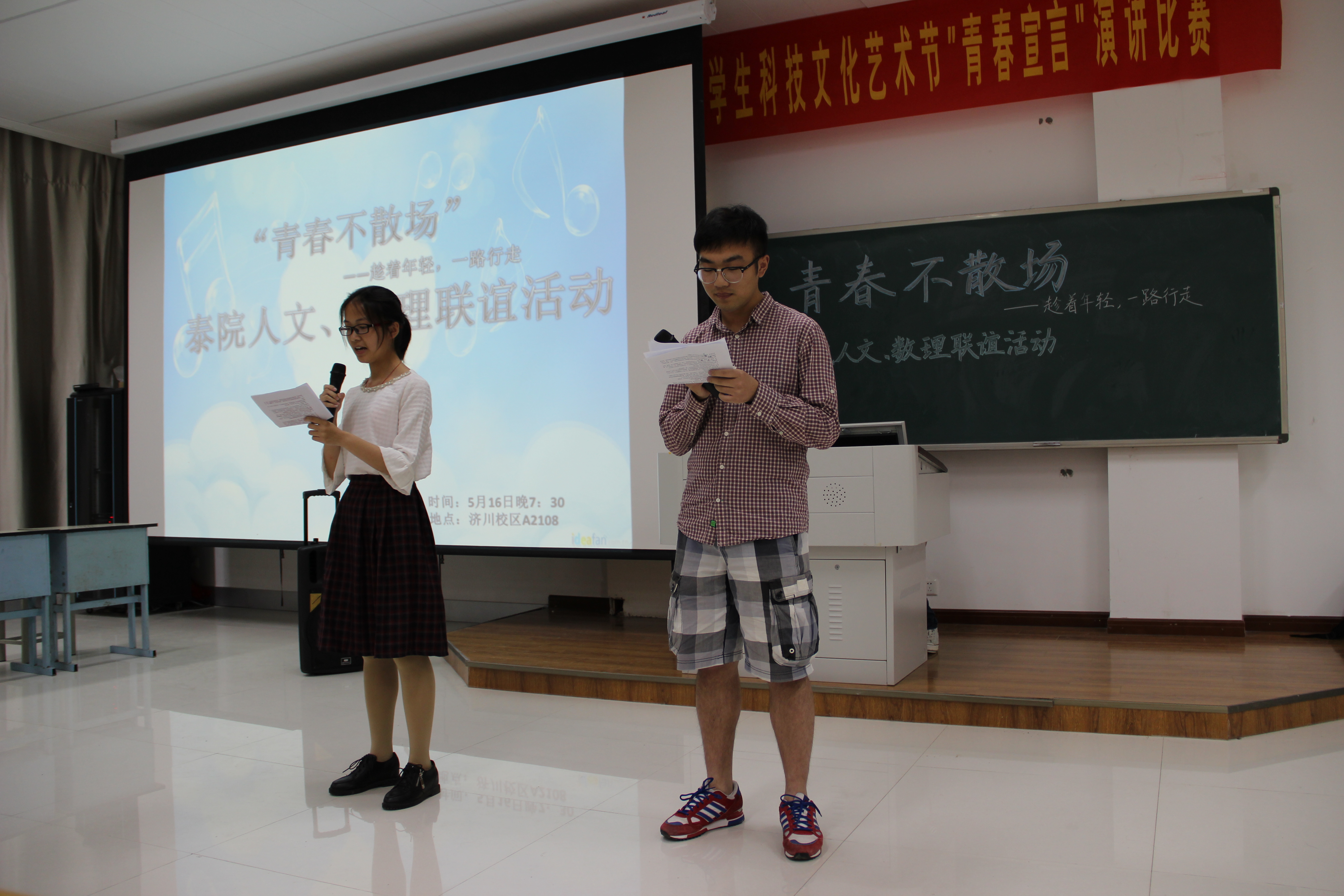 穿插在丰富多彩的节目表演间的是 “真心话大冒险”和“抢凳子”游戏。两个互动中,人文学子与数理的朋友们打成一片,欢声笑语不断。