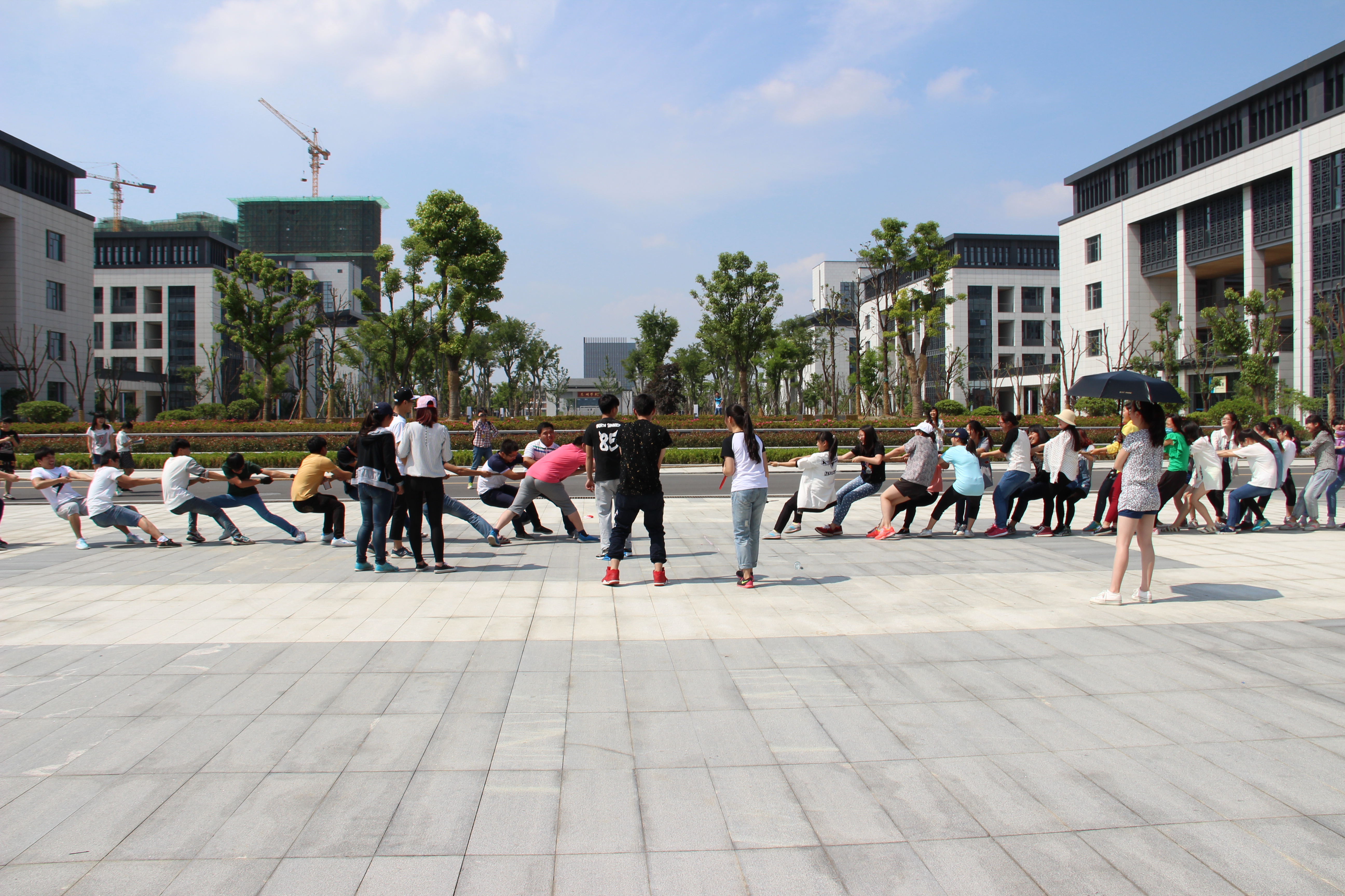首先开始的是男女混合拔河比赛。随着一声声裁判员哨子的吹响,各方的参赛队伍卯足力气,齐心合力。一时间图书馆楼前长久的平静被打破,场上来自各方的加油呐喊声此起彼伏,谁都不甘示弱。这一轮的比赛最后两支参赛队伍均是由女生组成。令人惊讶的是,看起来文弱的姑娘们一上了赛场,也是丝毫不输给男生。一个个都是意气风发,干劲十足。