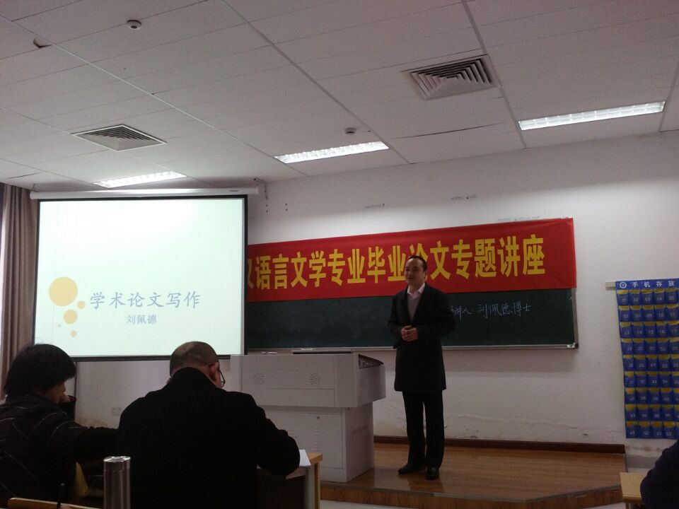 4月7日上午8点,bv1946伟德官网在A1208教室举行汉语言文学专业(本科)毕业论文专题讲座。本次讲座的主讲人为刘佩德博士。现场约150人,座无虚席。