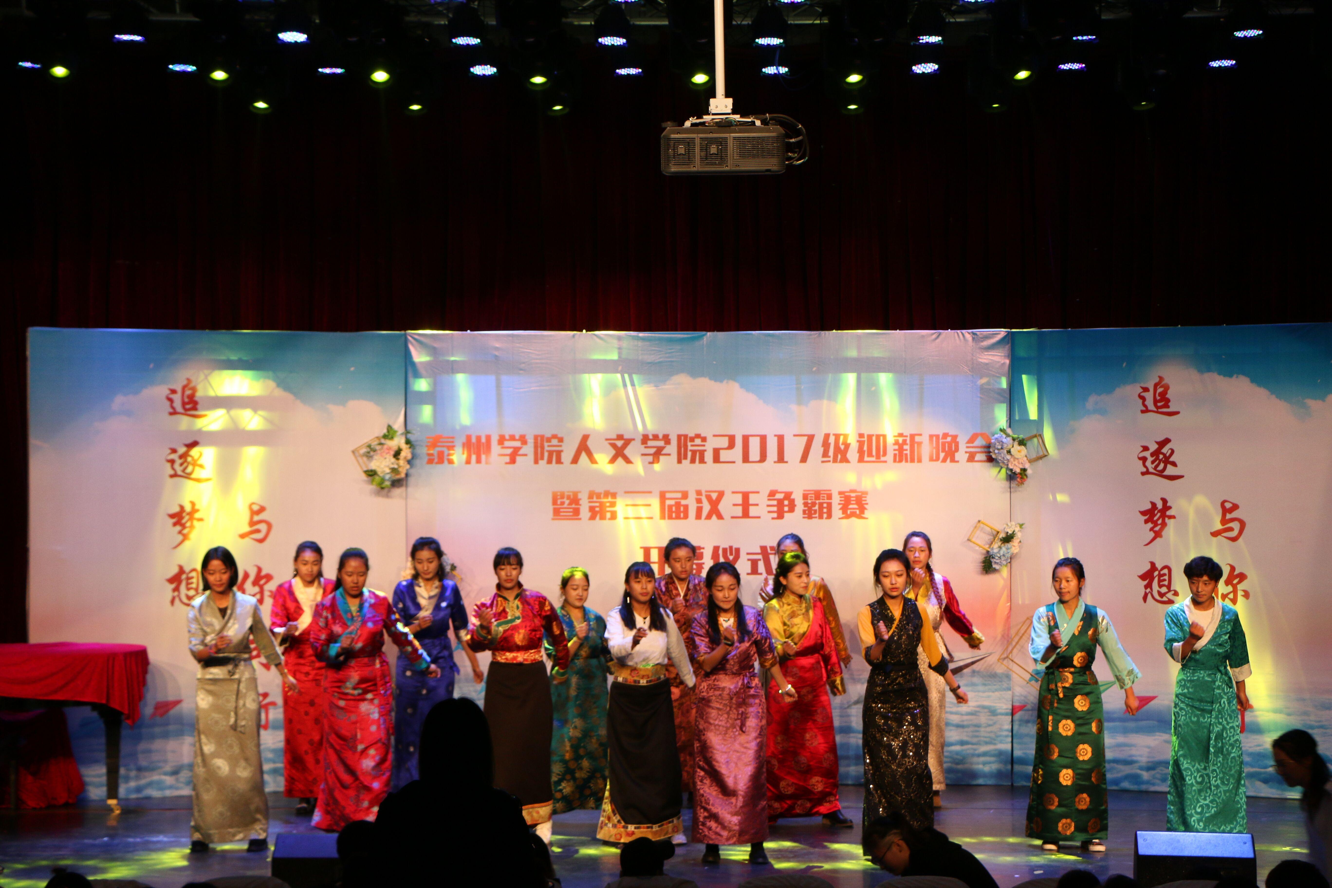 此次晚会还迎来了28位来自西藏的藏族同学,他们身着藏服、手挽哈达献上《舞藏王朝》这一充满民族特色的舞蹈,表达了对祖国对泰院对老师和同学们的祝福,将整场晚会推向了高潮!吉他弹唱《一个像夏天一个像秋天》震撼全场,以不带杂质的清澈歌声向观众展示了青春闺蜜间的细腻情愫、朋友的声声倾诉。