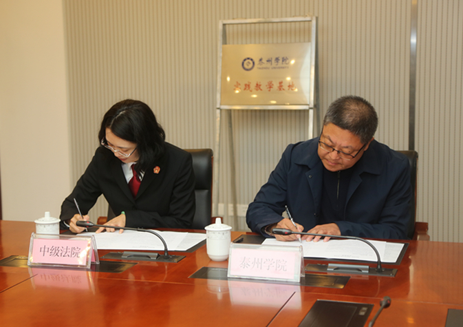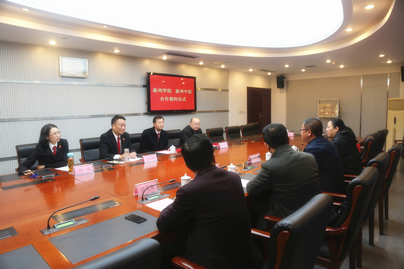 双方签署了合作办学协议,举行了实践教学基地揭牌仪式,并聘请泰州中院冯毅副经理、民三庭蔡勇庭长为公司知识产权专业兼职教授。双方进行了深入交流,一致表示将在法学人才培养、实践教学、课题研究、法制宣传、法律援助、志愿者服务、学术讲座等多领域展开合作。