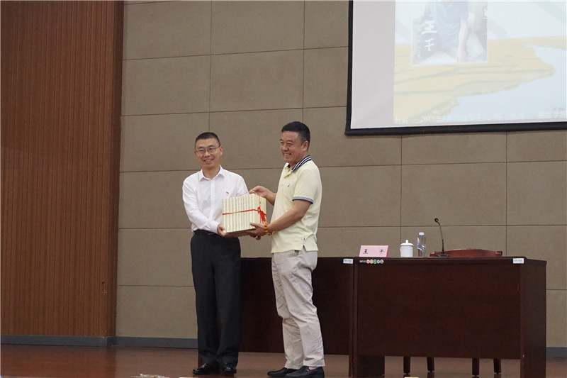 讲座伊始,王干向bv1946伟德官网赠送了新出版的《王干文集》,公司党委常委、副董事长鲁学军代表公司接受赠书。