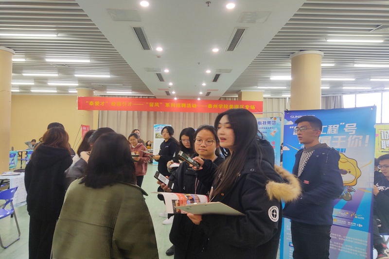 来自姜堰区的二十多家企业、公司,涉及到多个行业。公司同学积极与需要文秘、教师的企业、公司交流沟通,了解他们需求的岗位相关福利、待遇、发展空间、企业文化,也为企业对高校人才培养模式有了更多的了解。(院员工会创就部)