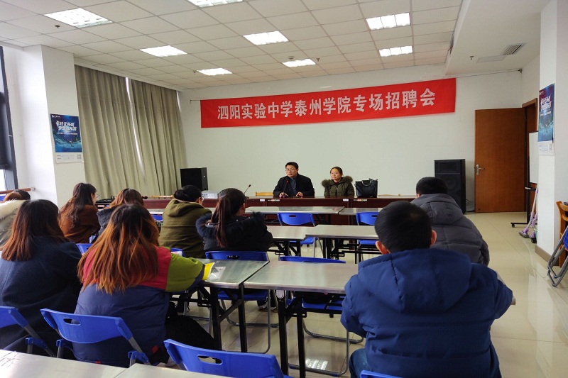泗阳实验中学的招聘专员详细介绍了该校办学历史、办学规模、办学理念以及校园文化建设,就毕业生关心的教师编制、福利待遇等问题一一进行了解说。