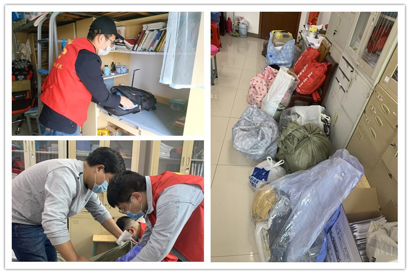 一翻一折,一开一合,志愿者们穿梭于各个寝室,在整理收集过程中,他们从容不迫、有条有理,分门别类的整理打包,并且最后反复确定。忙碌的下午,穿梭的身影,持续通话的手机,志愿者们力求最大限度为同学们做好工作。截至2020年5月19日,经过一周的志愿活动,志愿者们最终将18名同学衣物和142名同学的文件资料打包寄出。