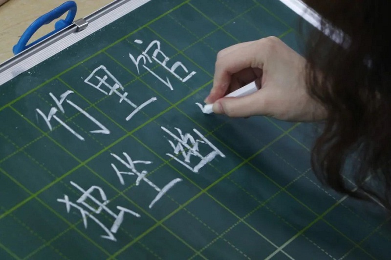 汉字书写比赛分粉笔字和硬笔字两部分,楷书、行书不限,粉笔字书写内容为王维的《竹里馆》,硬笔字内容为杨万里的《小池》和张籍的《秋思》,两部分共计限时八分钟。比赛正式开始,参赛同学或低头或弯腰,刚劲有力的笔触、行云流水的书写与隽秀整齐的字体,展现了师范生的扎实基本功。比赛结束后,评委老师对全场作品进行打分。