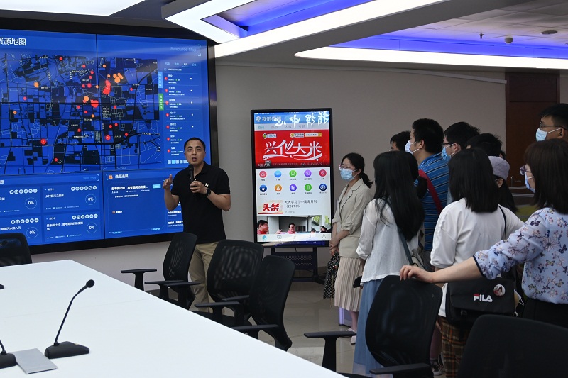 在全媒体新闻指挥中心,电视台工作人员从泰州政务、本地外宣、舆情分析、资源地图等方面为大家详细讲解了该中心的采编管理系统、媒体资源管理系统和大数据管理系统,并介绍了“我的泰州”APP的创作理念、版块特色、传播功能、使用方法、运行经验、技术保障等。