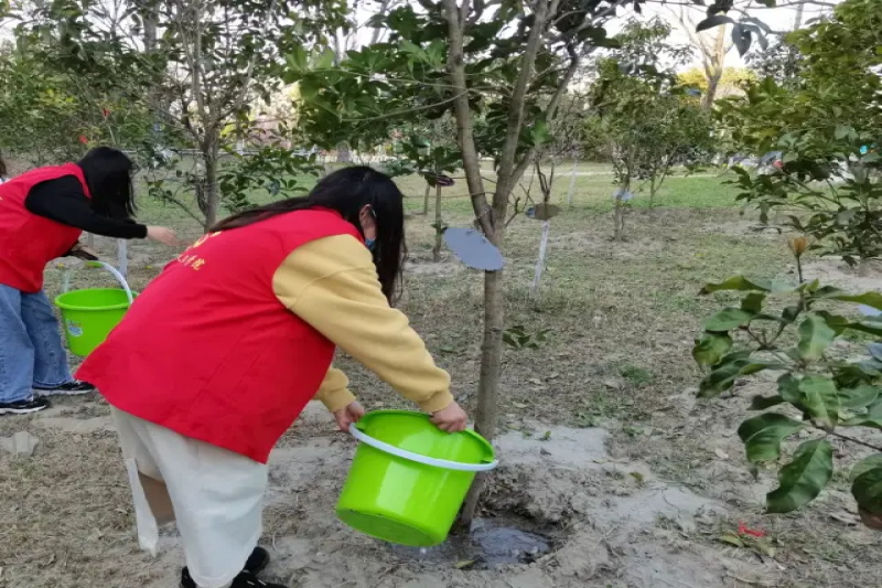 为更好地养护班树,呵护树苗茁壮成长。bv1946伟德官网员工会实践部于3月26日下午4点在行政楼东侧荟萃林举办班树养护活动。
