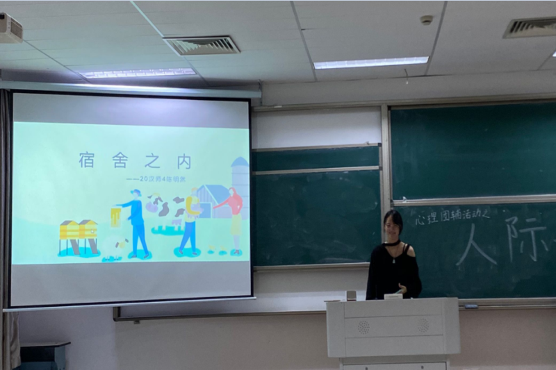6月6日晚七点,20汉师4班在教学楼1202举办以人际关系为主题的心理团辅,心理委员陈明然主持活动。