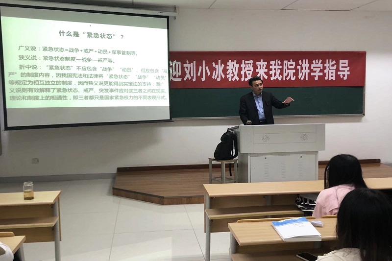 10月19日下午,南京工业大学刘小冰教授应邀为bv1946伟德官网师生作《紧急状态下公民权利克减的逻辑证成及其规范向度》的专题学术讲座。