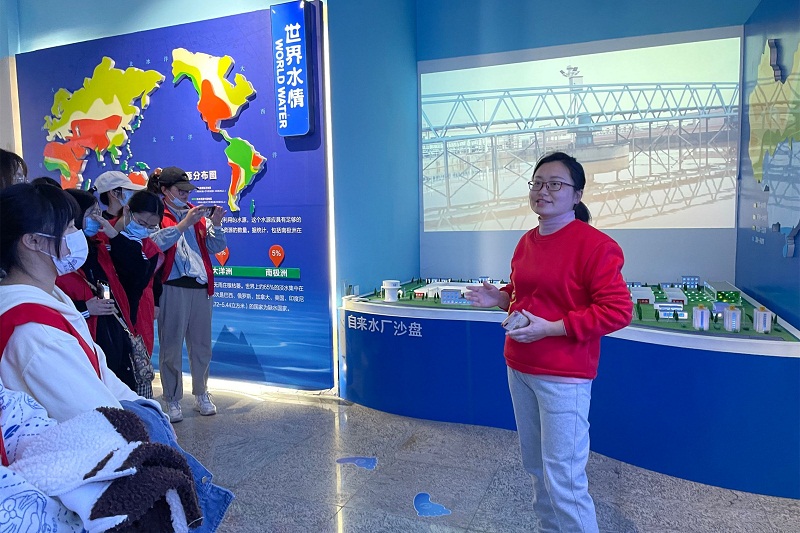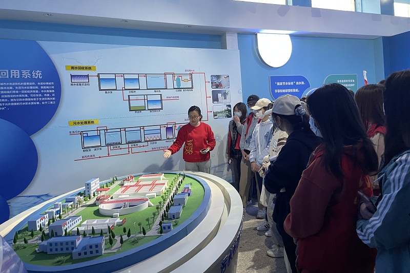 在节水教育基地,同学们认真聆听讲解员的解说,了解到生活用水的来源、污水处理的步骤、我国水资源分布等相关知识。此外,同学们近距离参观了简易化的水资源循环装置,对循环用水的应用有了更直观的理解。