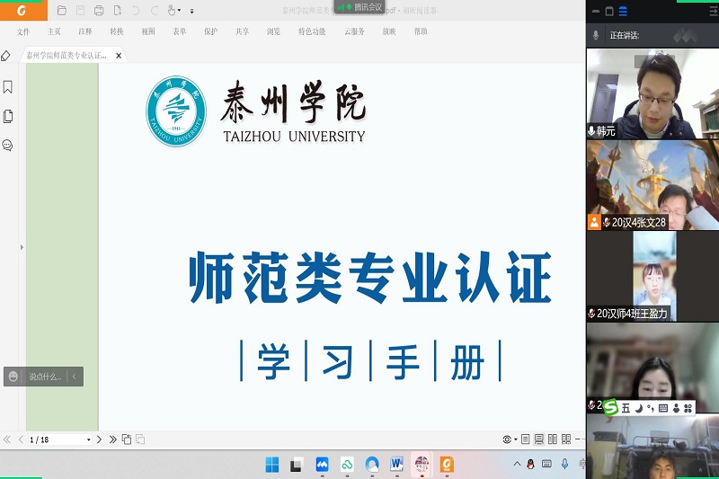 为进一步推进2022年师范专业认证准备工作,bv1946伟德官网汉语言文学专业各班级于4月1日组织了一次线上专题交流活动。各班班主任从师范类专业认证基本知识、认证的重点问题、主要监测指标三个方面带领员工共同学习。