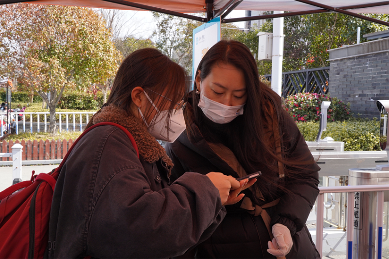 沉睡了一个寒假的校园被同学们的欢声笑语所浸染。从公司大门到宿舍楼下,随处可见忙碌着的“红马甲”,测温、问询、搬行李,一切工作都在有条不紊地进行着。志愿服务精神是人文学子身上自带的光环。一声问候、一个微笑、一句感激,相互帮助是大家心照不宣的默契。