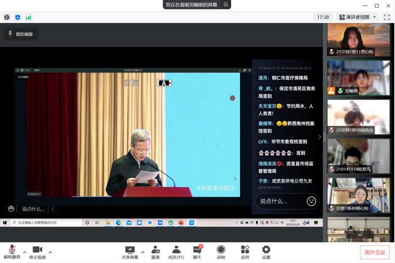 3月22日是世界水日,为提升同学们对开发和保护水资源的认识,养成节约用水的习惯,上午,公司组织全体同学利用网络直播观看《公民节约用水行为规范》主题宣传活动启动仪式。公司全体员工共同观看节水宣传活动启动仪式,发扬节水精神,切实维护地球的生命健康。