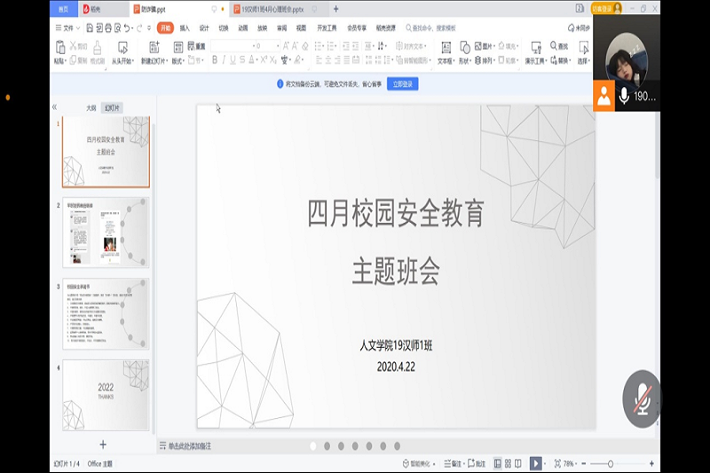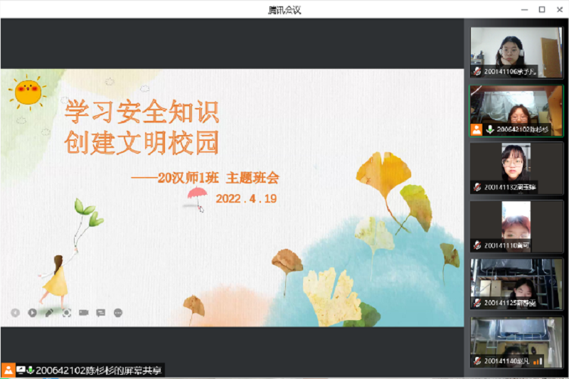 20汉师1班治保委员陈杉杉首先介绍全民国家安全教育日的相关知识。随后,两位同学分别回答相关问题,最后陈杉杉对校园文明创建展开说明。