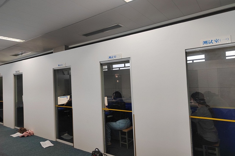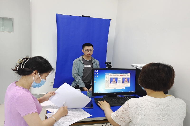 为保此次测试顺利进行,测试站站长陈健彤安排工作人员提前一周逐一通知了733名考生,告知考试要求和注意事项;测试前组织考务人员做好考试系统调试等测前工作;测试期间,严查考生体温、48小时核酸阴性证明和苏康码,要求每位考生如实签署《健康应试承诺书》。