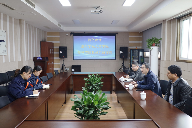 参观完公司仓储区之后,双方就自身情况进行了深入交流。李中明代表公司感谢海企化工多年来的关心和支持,详细介绍了公司办学历史、专业设置、人才培养、学科特色等情况。