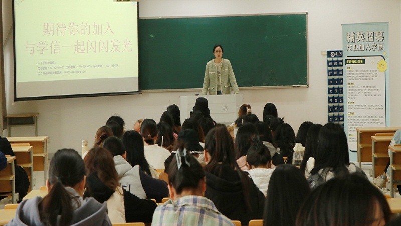 首先,徐老师向同学们介绍了公司创办理念和办学宗旨。接着,徐老师和大家分享了学信教育的发展情况:公司以江苏省为主要发展核心,总部设在南京,目前在泰州、常州、南通都有直营公司。同时,徐老师讲述公司未来的发展计划和布局,立志以高素质、高效率、高通过率为目标,努力跻身教育机构行业上游,打造有特色的品牌。最后,徐老师向同学们说明了公司的招聘需求。主要招聘岗位为教务岗位,负责教学服务工作,并设有新媒体网络运营和平面设计岗位,负责网络推广和广告设计。此外,在薪资待遇、五险一金、员工福利等方面都做了详细的解说,同学们更加全面、直观的了解学信教育。