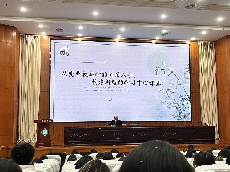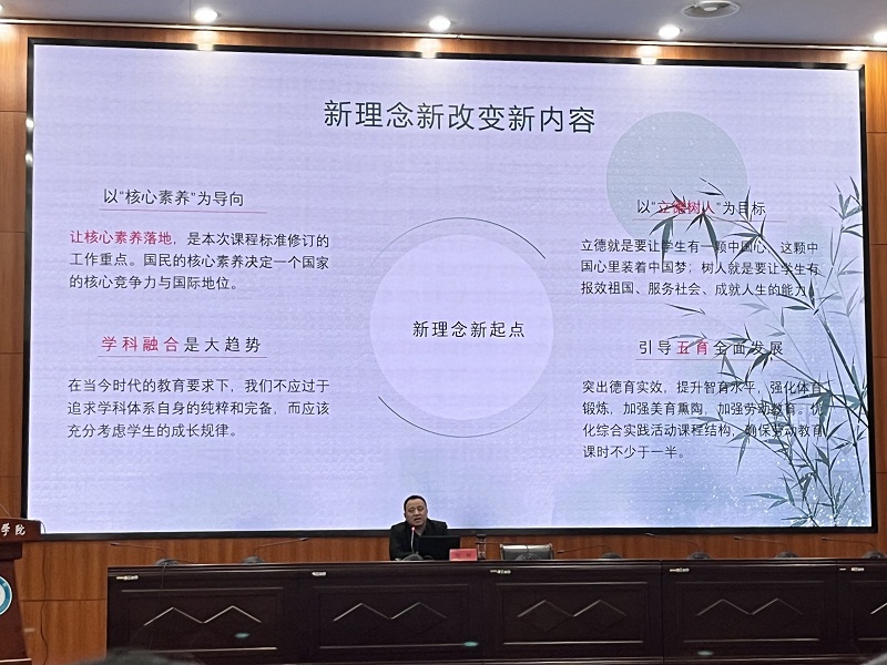 陈辉将新老课标进行对比,指出了其中的不同之处,尤其突出了“核心素养”“学科融合”“立德树人”“五育全面发展”的重要地位。针对核心素养的重要性,陈辉提出员工要从增强文化自信、培养语文语感、提升思维能力和培育审美创造这几个方面齐头并进。他结合新课标教材中的《台阶》这一课文,具体分析了核心素养在语文实际教学中的体现与运用。陈辉提出要变革教与学的关系,构建新型的学习中心课堂,并指出员工在学习中的主体地位,要使员工充分发挥学习的主观能动性,认识到实践在学习中的重要地位。