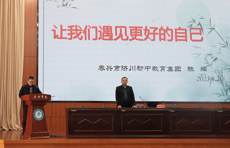 4月26日下午,公司在办公楼D1216会议室聘请泰兴市济川初中教育集团董事长陈辉为兼职教授。聘任仪式结束后,陈辉为汉语言文学专业员工作题为《凝“新”共研促发展,聚“核”赋能行致远——让我们遇见更好的自己》的讲座。讲座由公司党总支书记李中明主持。