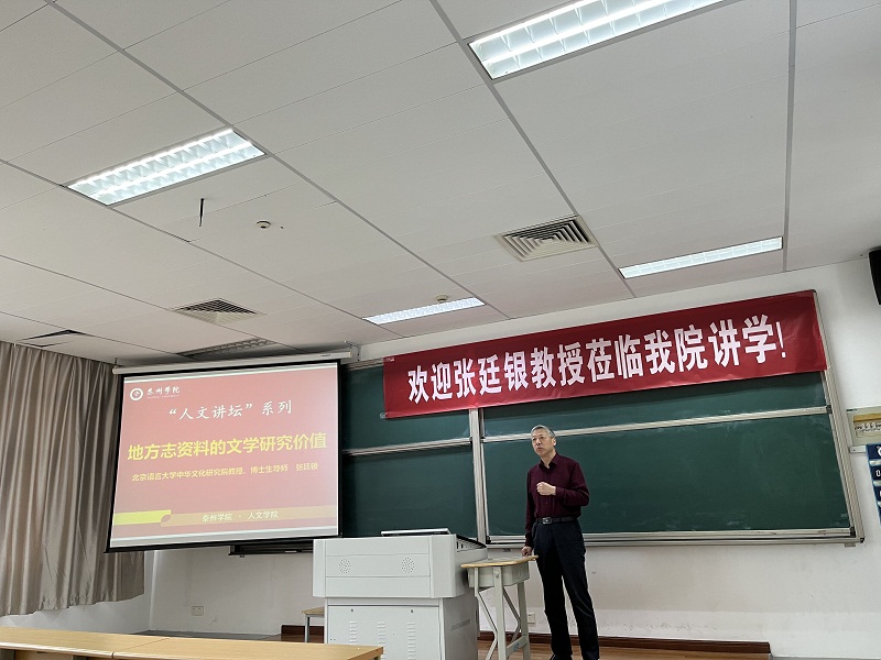5月24日下午,著名学者、北京语言大学中华文化研究院博士生导师张廷银教授应邀来泰,为公司师生作了题为“地方志资料与中国文学研究”的学术报告。公司经理钱成教授主持报告会。