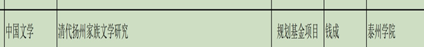 9月16日,2023年度教育部人文社科研究项目评审结果公布,钱成教授申报的“清代扬州家族文学研究”获评规划基金项目。