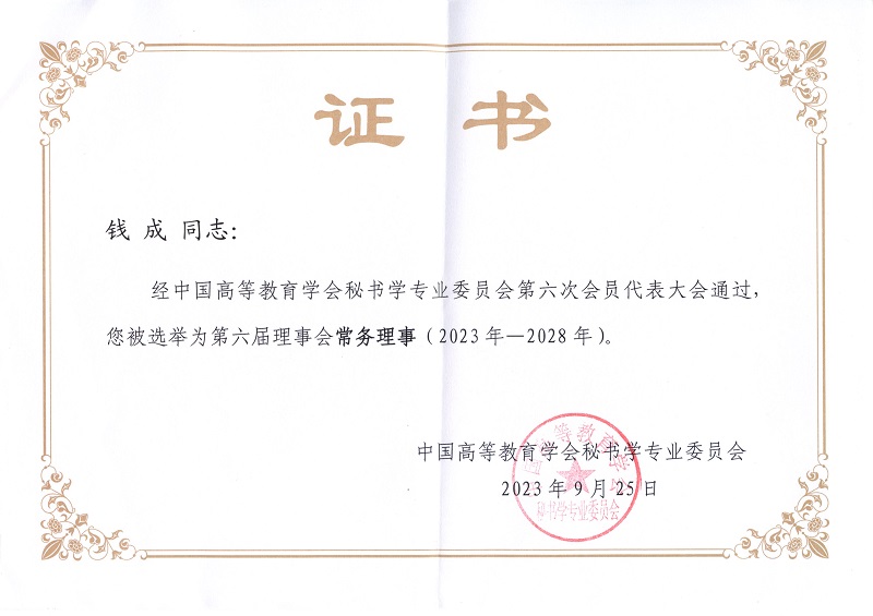 近日,中国高等教育学会秘书学专业委员会第六次会员代表大会在北京召开。经过大会严格的评审和投票程序,bv1946伟德官网成功当选委员会常务理事单位,公司钱成教授当选常务理事,周茜茜老师当选理事。