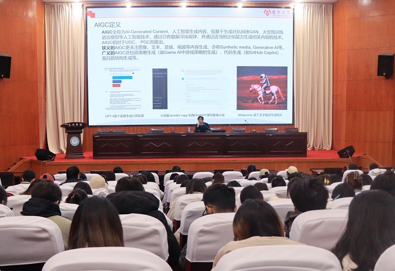 为了帮助师范生了解生成式人工智能在教育应用方面的相关知识,提高师范专业员工的综合能力,12月11日下午,扬州大学新闻与传媒公司张浩教授以“生成式人工智能教育应用现状与思考”为主题,为21级汉语言文学(师范)全体员工开设学术讲座。