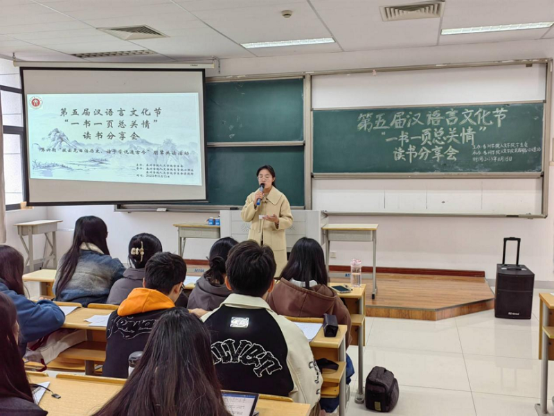 为提升同学们的文化素养,营造良好的校园读书氛围,带动更多同学走近国学、爱上国学,公司于11月15日下午3点在教学楼1201开展了第五届汉语言文化节“一书一页总关情”读书分享会第六期“共沐杏雨中”良师共读活动。本次活动邀请了张珺老师带领同学们领悟国学之美。