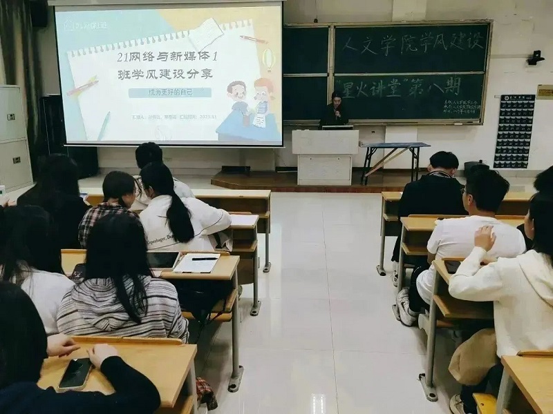 为了进一步推动学风建设,营造相互学习、共同进步的良好学习氛围,11月5日晚7点,公司于教学楼2108开展第八期学风建设“星火讲堂”。由来自21、22级的优秀班级分享学风建设的经验和成果,年级辅导员胡维一老师和21、22、23级班级的班长及团支书参与本次活动。