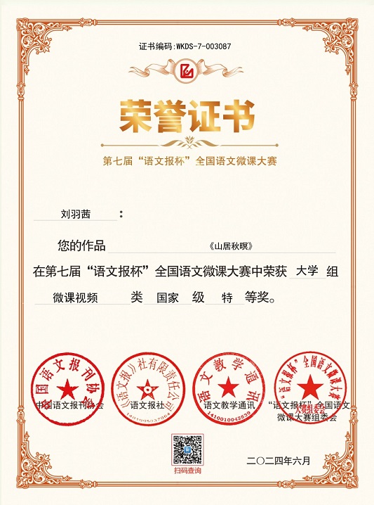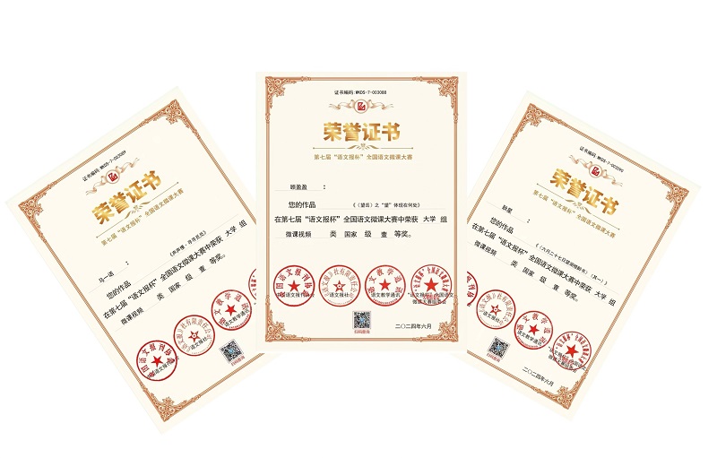 由中国语文报刊协会、语文报社联合主办,语文报社新媒体中心、《语文教学通讯》编辑部、《语文报》编辑部协办的第七届“语文报杯”全国语文微课大赛,自2023年7月启动以来,得到了全国各地语文教师、高校老员工、研究生等群体的积极响应,活动影响深远。本次参赛,公司邀请河东吟诵传承人柴海军老师进行指导,获奖作品采用“吟唱教学法”再现古诗词教学的真实面貌,进一步提升了汉语言文学专业员工的基本素养。