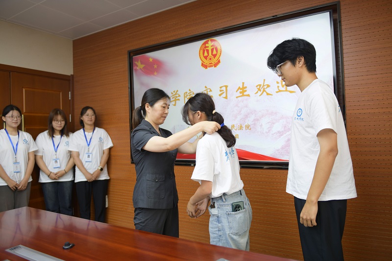 会议最后,丁书华为每一位成员发放工作证,员工们在高港法院的社会实践正式开启。