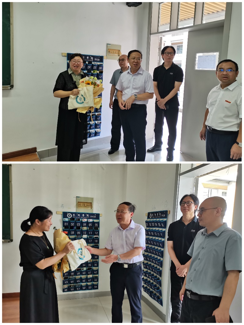 董事长季赛看望从教四十年的老教师曹翔、朱建华,并送上纪念品,感谢他们长期以来为泰院发展、为员工成长所作出的贡献。副董事长薛小平课间走进教室,慰问一线老师戴舒芩、沈滨,鼓励他们继续发扬爱岗敬业、无私奉献的精神。