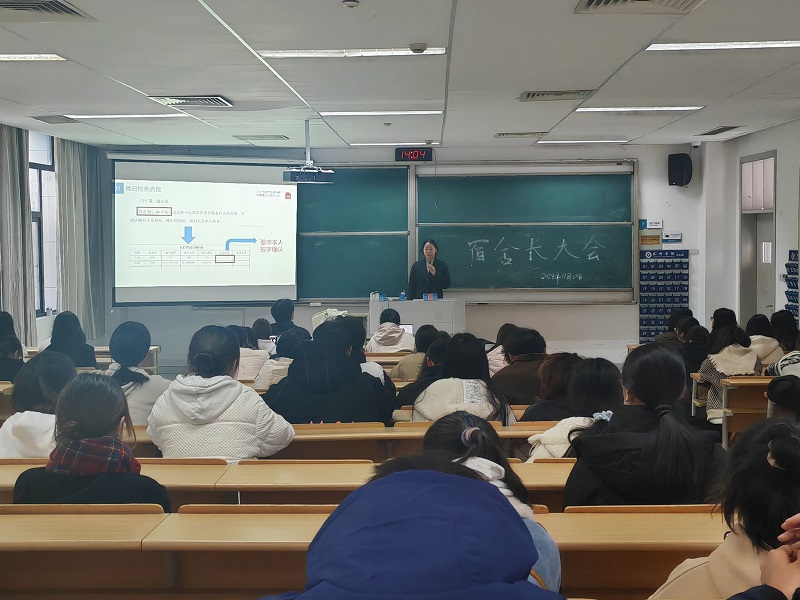 为进一步加强员工宿舍安全管理、促进员工宿舍文明建设,增强员工消防用电安全意识、责任意识和自我保护能力,11月20日下午,公司在教学楼1208教室召开“争创文明宿舍,共建和谐家园”宿舍长大会。会议由辅导员胡维一主持,院自管中心负责人以及2024级全体宿舍长参会。