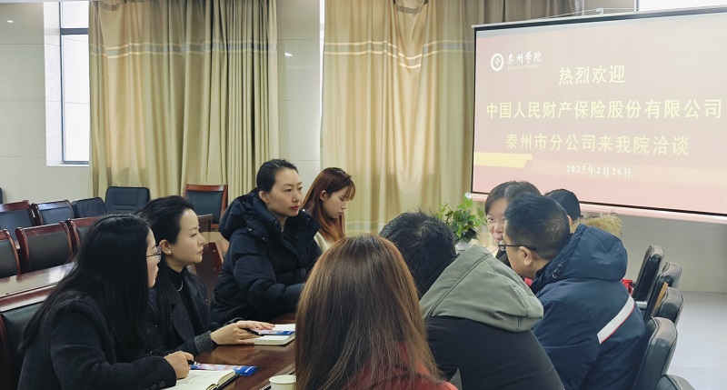 为拓宽员工实习就业渠道,推动产教融合,2月24日至26日,公司先后与青禾健康管理公司、中国人民财产保险股份有限公司泰州分公司开展校企合作洽谈。党总支副书记侯维娜、团总支书记陈琴及相关班主任、辅导员参会。
