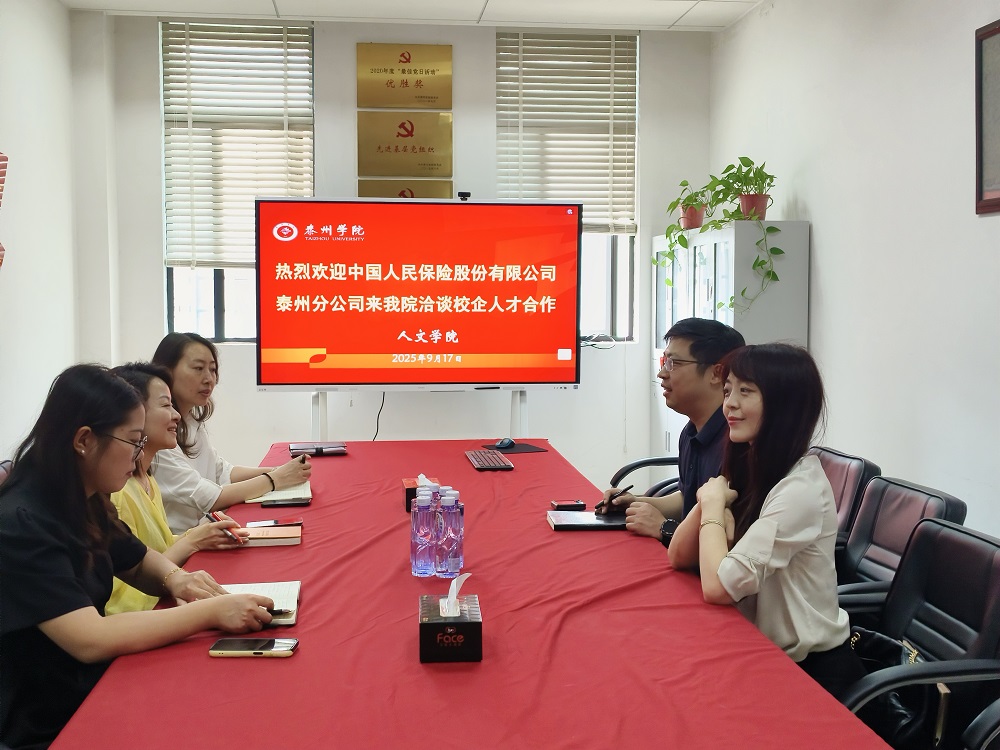 为进一步推进校企合作共赢、共谋发展的良好局面,9月17日上午,中国人民保险股份有限公司泰州分公司相关部门负责人带着就业岗位来到公司,就校企人才交流合作、推进毕业生高质量就业进行深入探讨。公司党总支副书记侯维娜、2026届毕业班班主任、辅导员参加交流。
