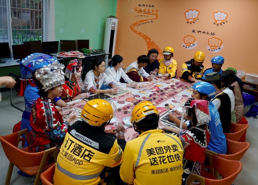 演出结束后,员工代表与社会各界新就业群体共同做月饼,唠家常。